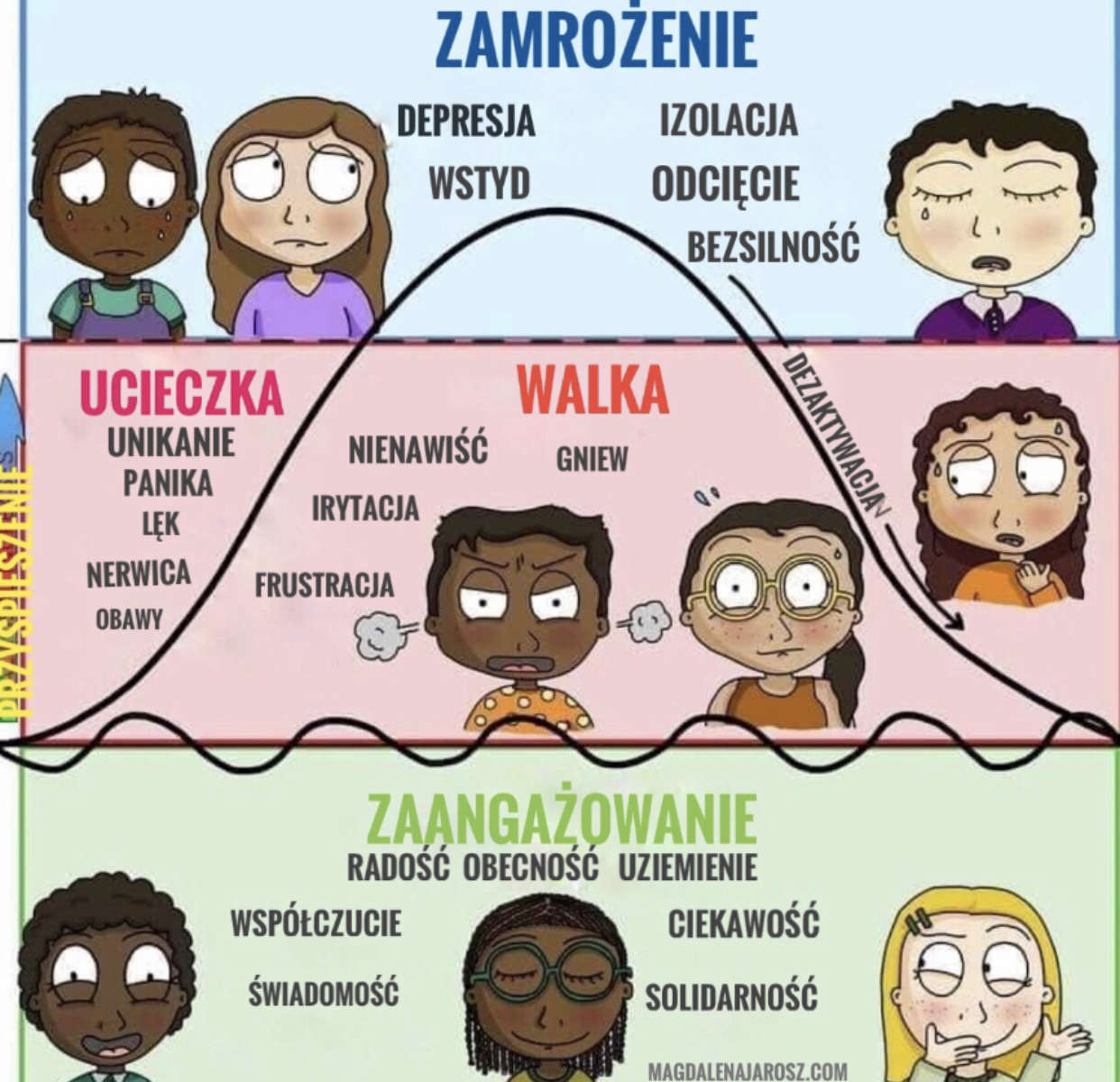 •ze zrozumieniem, nazwaniem potrzeb i emocji : dzielisz je na pozytywne – negatywne,